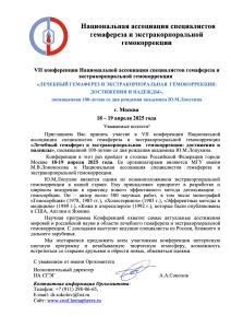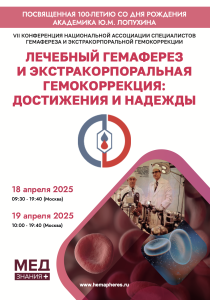 VII Конференция Национальной ассоциации специалистов гемафереза и экстракорпоральной гемокоррекции «Лечебный гемаферез и экстракорпоральная гемокоррекция: достижения и надежды», посвященная 100-летию со дня рождения академика Ю. М. Лопухина